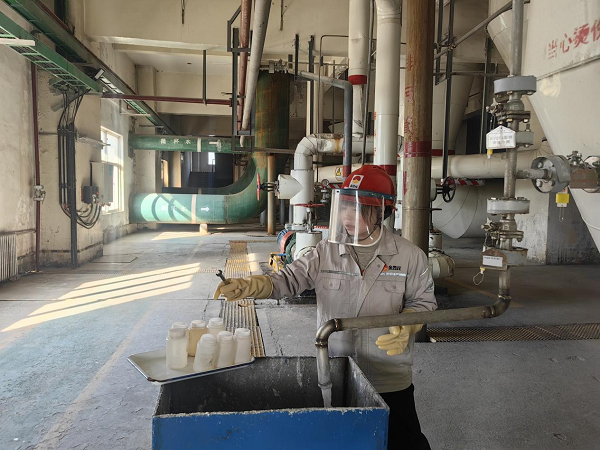 她們拎著貼好標(biāo)簽的取樣瓶,快步走向鹽硝廠房的各個(gè)取樣點(diǎn),回來(lái)時(shí),取樣瓶里裝著各色各樣的樣品,有的是晶瑩剔透的液體,在瓶中輕輕晃動(dòng),泛起細(xì)碎的漣漪;有的是白色的晶體顆粒,隨著腳步的顛簸,發(fā)出“沙沙”的輕響;還有的是粘稠的漿液,掛在瓶壁上,緩緩滑落。將樣品放置在滴定檢測(cè)區(qū)的那一刻,瓶身與臺(tái)面碰撞,發(fā)出“!钡囊宦暣囗,像是為接下來(lái)的化驗(yàn)工作,敲響了開場(chǎng)的鼓點(diǎn)。